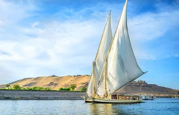 Sail the Nile in the most traditional way on a Felucca boat and soak in the peaceful atmosphere of Aswan. Let the wind guide your journey as you glide past islands and palm-lined shores. The highlight of this trip is a stop at Kitchener’s Island, famous for its lush botanical gardens where rare plants, flowers, and trees from around the world flourish.